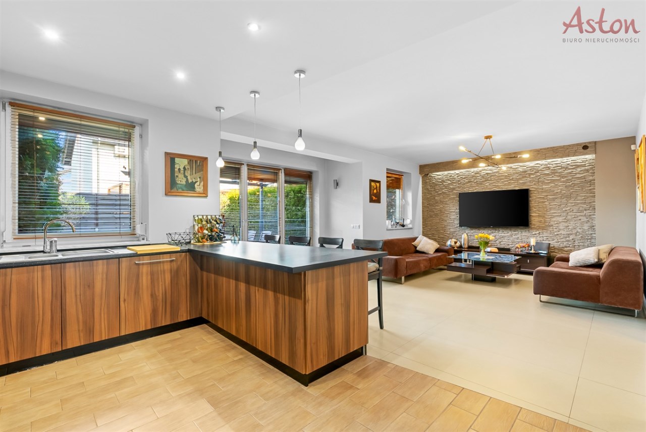 • Bardzo duży, przestronny salon z jadalnią i otwartą kuchnią z wyspą