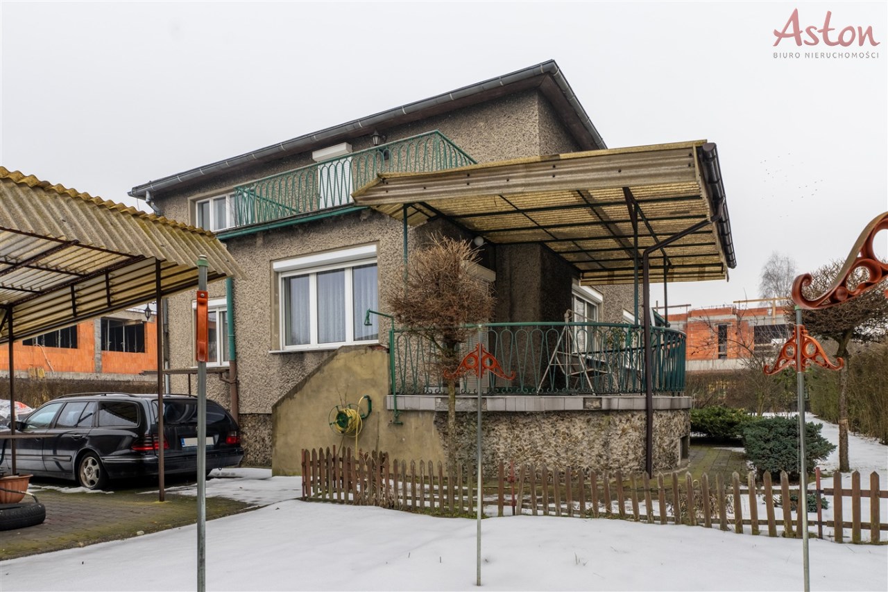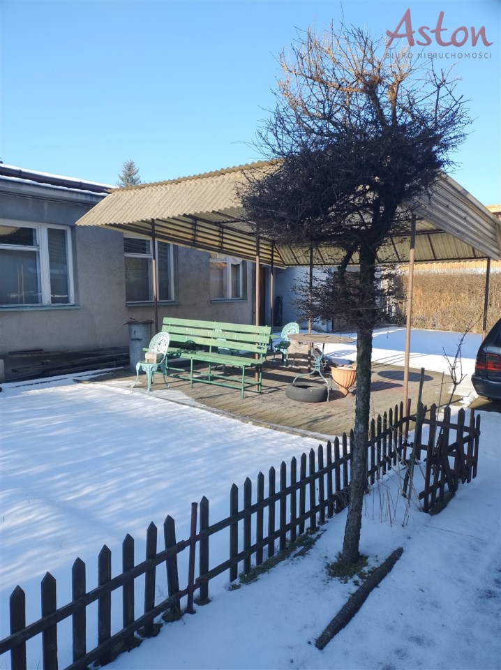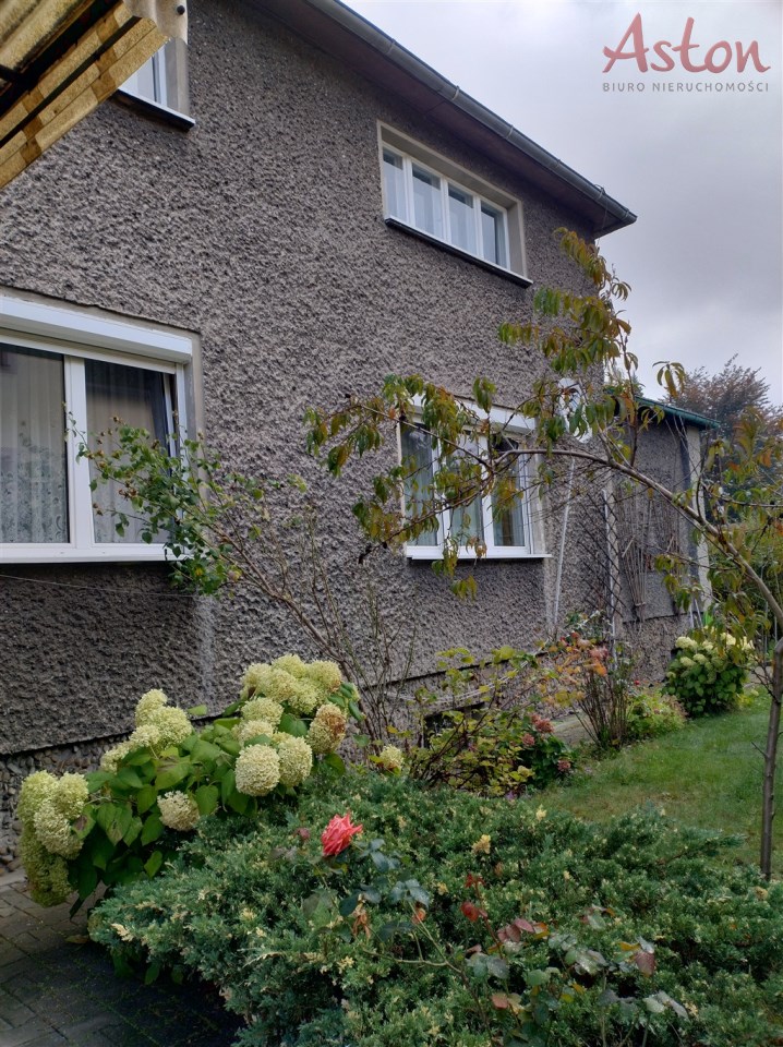 Na działce znajduje się zielony ogród z trawnikiem i krzewami oraz wiata z miejscem na grilla, idealna do spotkań rodzinnych i towarzyskich.