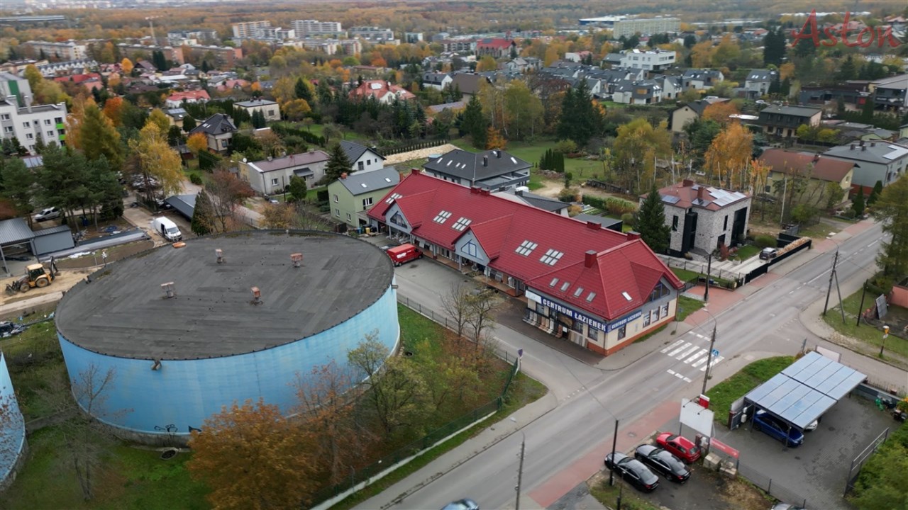 Budynek handlowo–usługowo–biurowy bezpośrednio przy drodze.