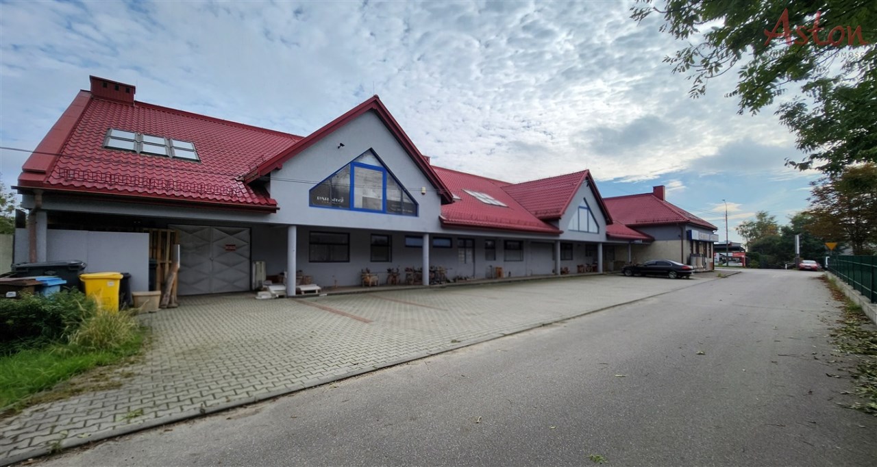 Budynek handlowo–usługowo–biurowy bezpośrednio przy drodze.