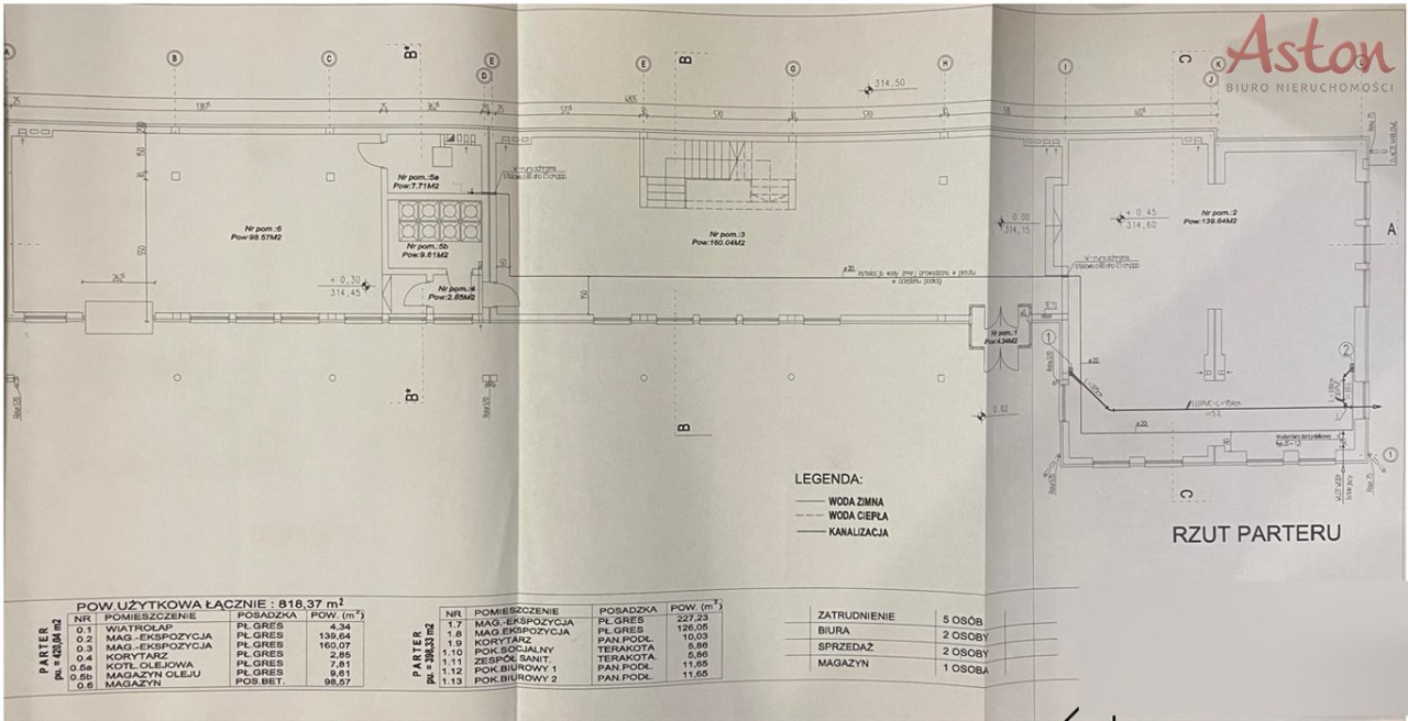 • Parter: przestronna sala typu open space, magazyn z bramą dostawczą, zaplecze sanitarne, pomieszczenie gospodarcze