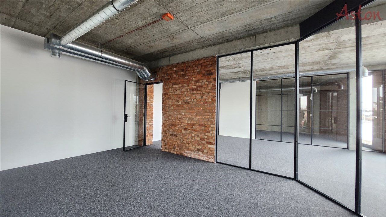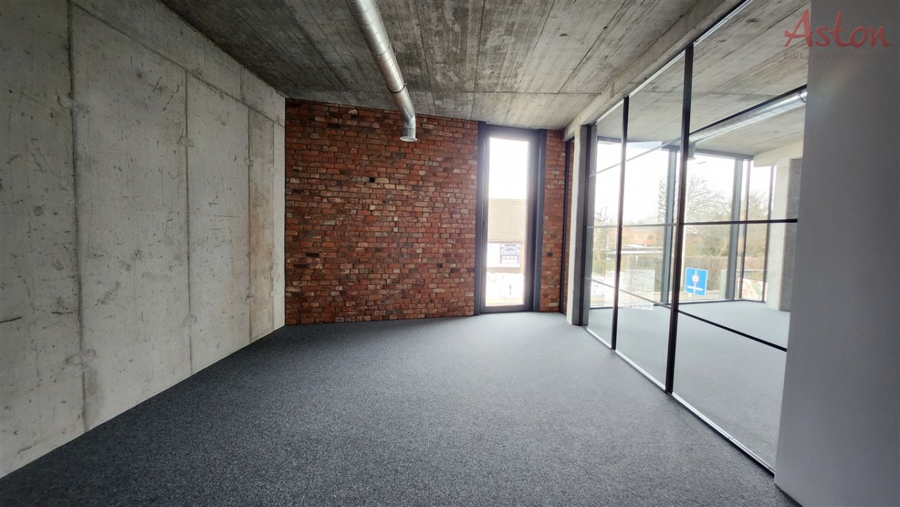 • Lokal biurowy 31 m² wykończony w wysokim standardzie w stylu industrialnym (cegła, beton, szkło).