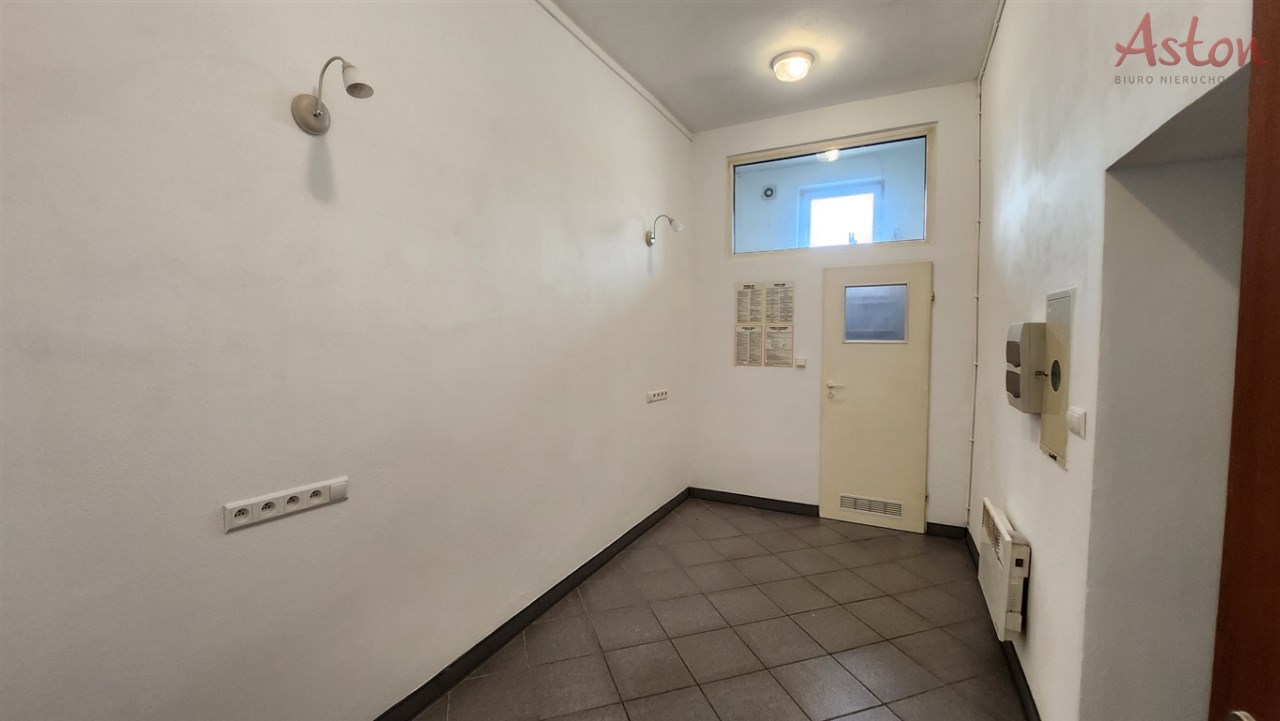 Lokal znajduje się na parterze budynku i składa się z dwóch pomieszczeń oraz WC.