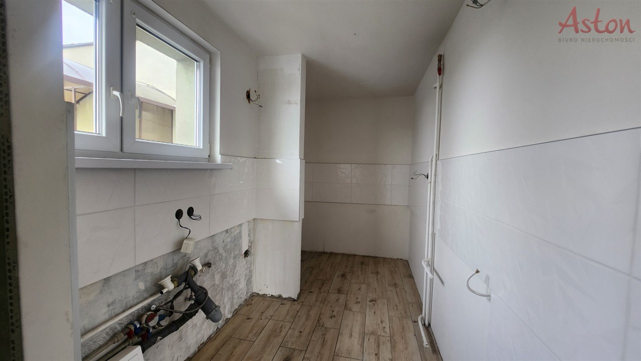 Łazienka oraz kuchnia są już po remoncie i wykafelkowane. W lokalu wymieniono również kaloryfery, instalację wod-kan oraz częściowo elektryczną. Pozostała część mieszkania została przygotowana do dalszych prac remontowych – wykonano najbardziej uciążliwe etapy: usunięto stare meble, płytki, tynki, panele, boazerię.
