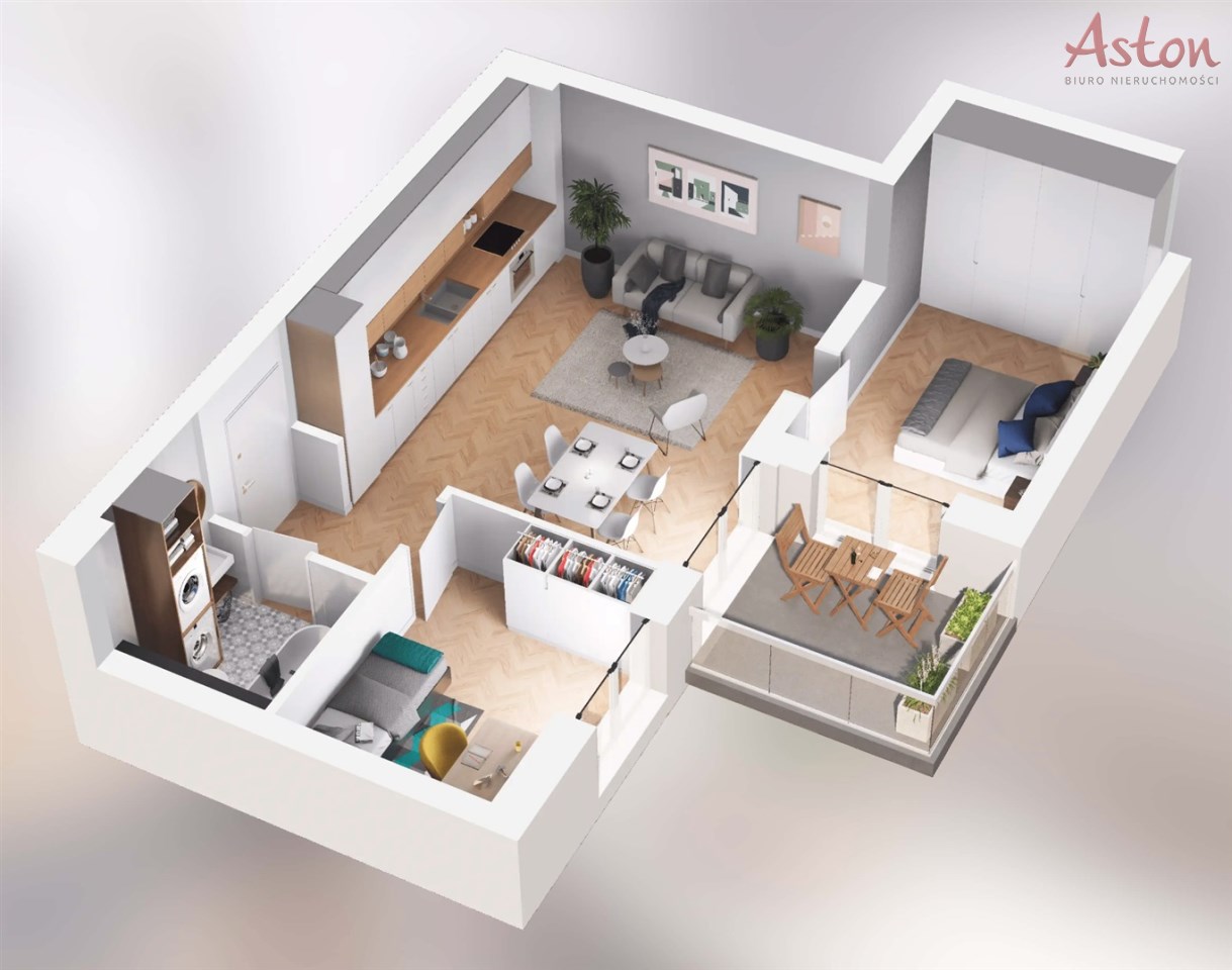 • Optymalny metraż: 52,33 m2 pozwala na swobodną aranżację salonu z aneksem oraz dwóch ustawnych pokoi (sypialnia + biuro/pokój dla dziecka).